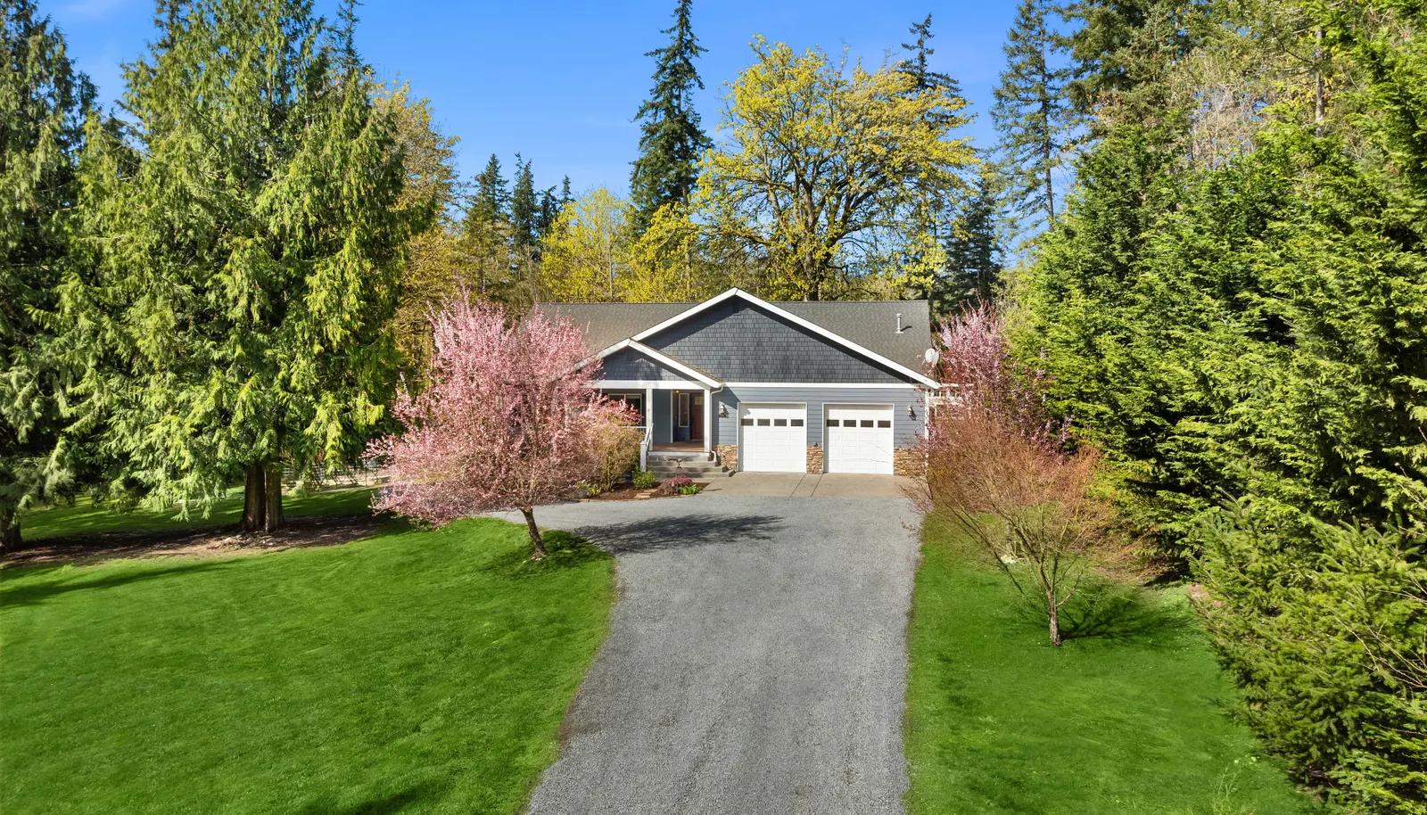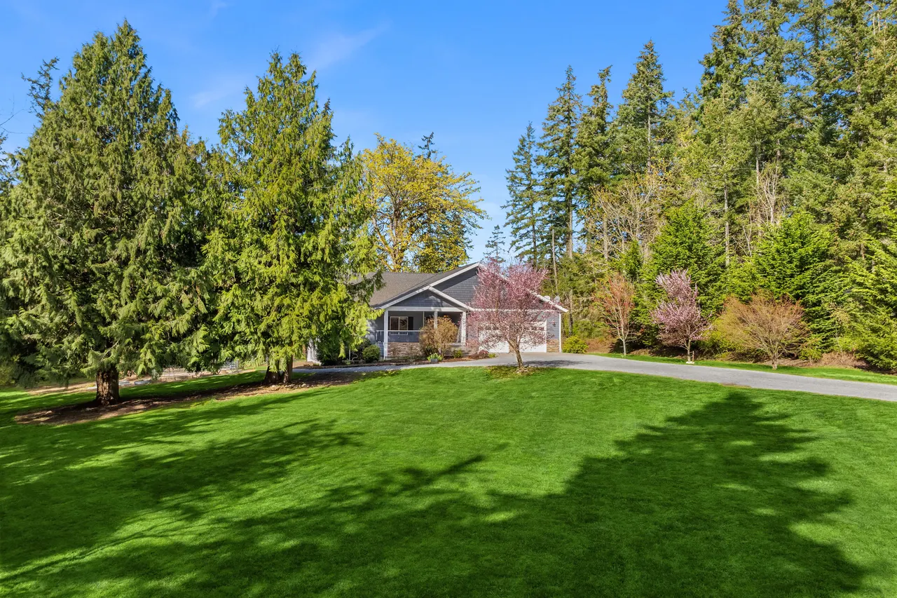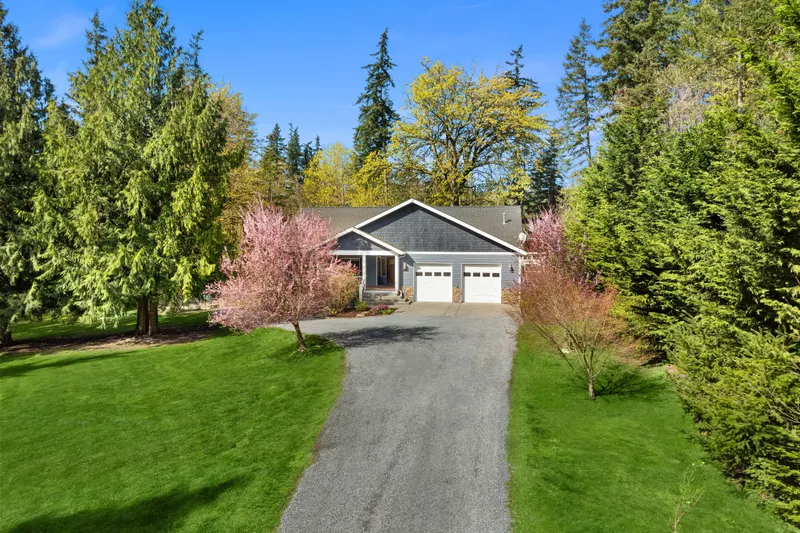 Imagine...Surrounded by towering trees with Elger Bay trails out your back door, this level and all usable 2.4-acre sanctuary offers single-level...