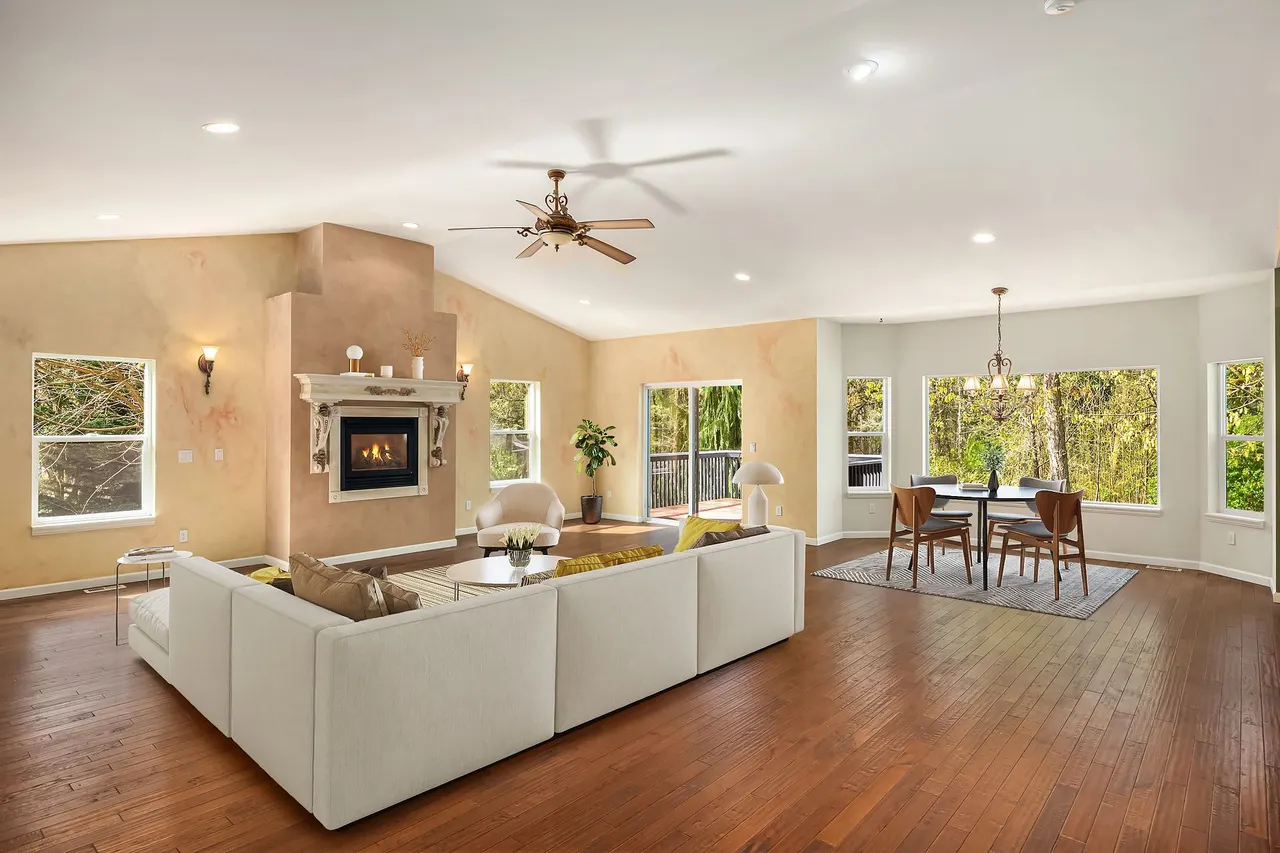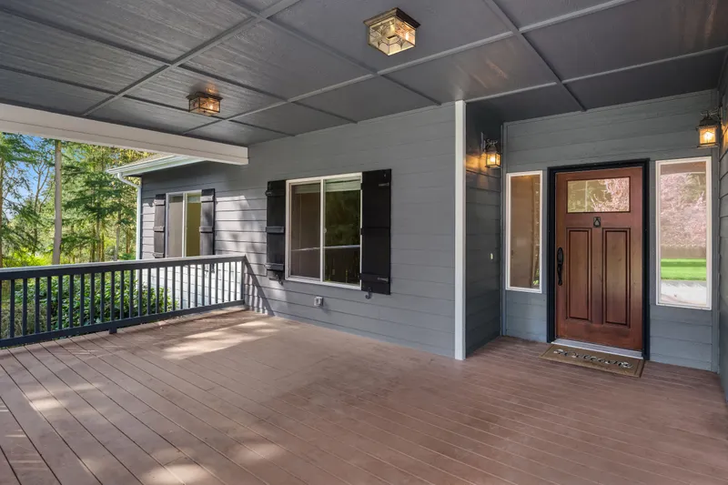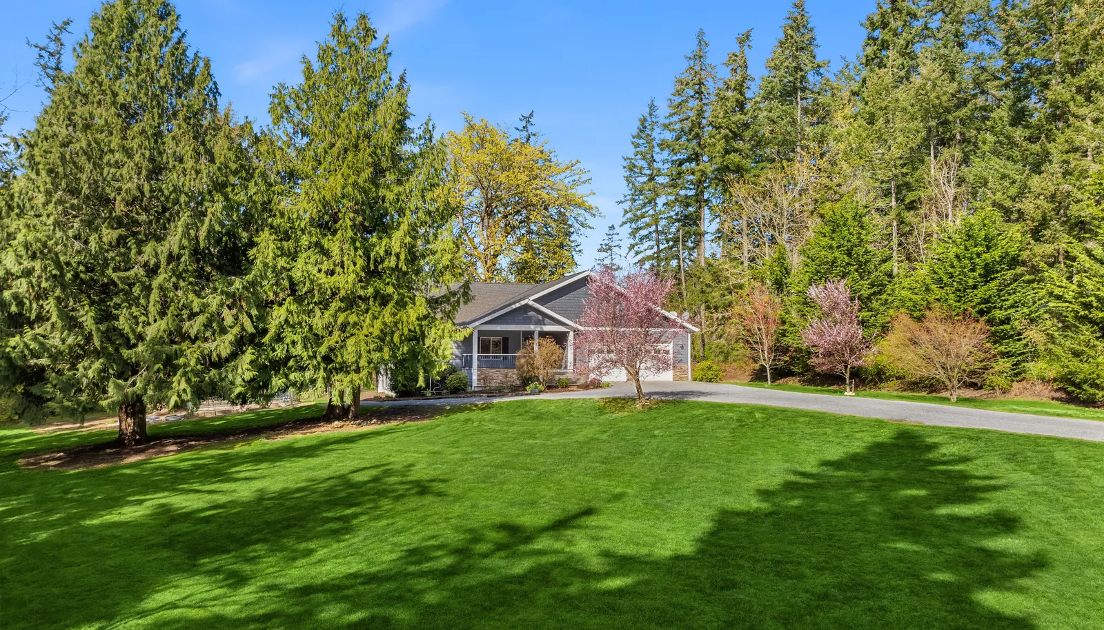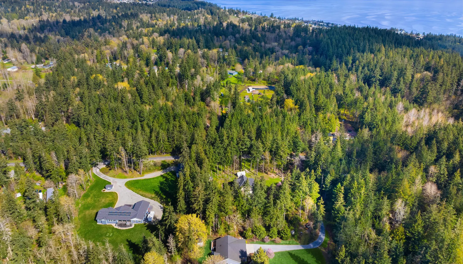 Imagine...Surrounded by towering trees with Elger Bay trails out your back door, this level and all usable 2.4-acre sanctuary offers single-level...